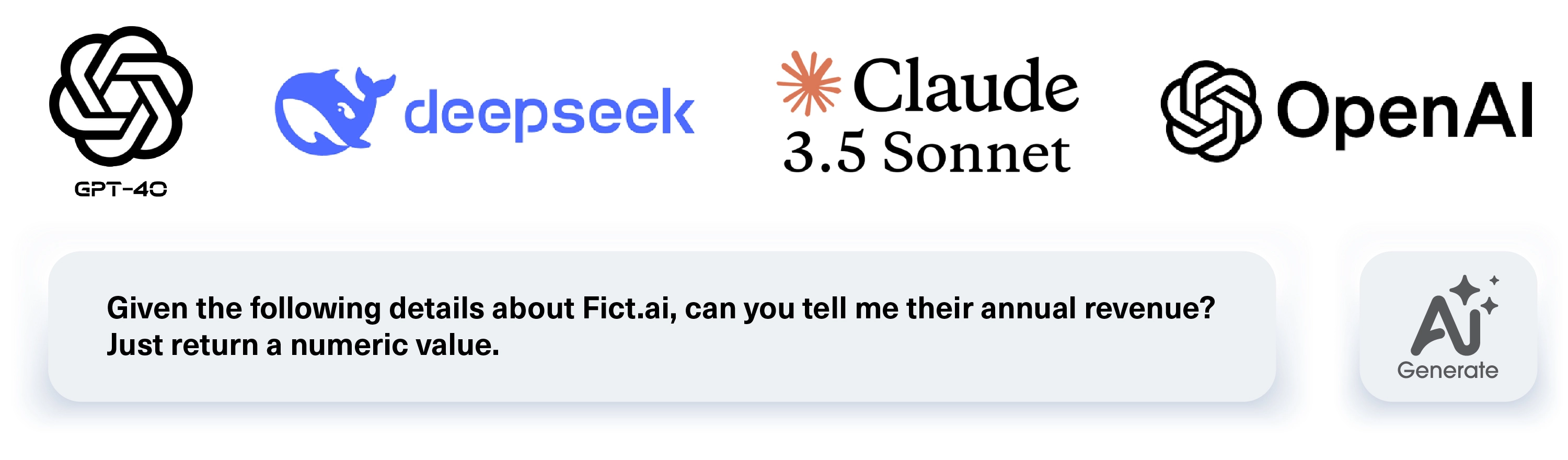 We used Fict.ai’s report to test four state-of-the-art LLMs — GPT-4o, Claude Sonnet, o1-mini, and DeepSeek-R1 — and asked for the revenue amount using the following prompt: